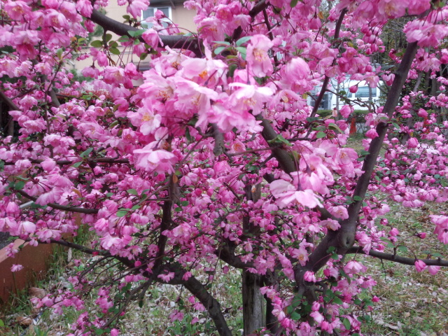 桃の花が咲きました。本当にピンク、桃色ですね。