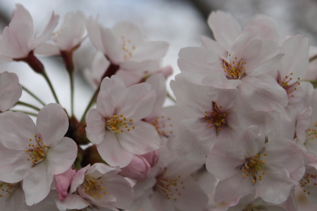 小雨降る中、桜の花を撮影したのですがさくらは頑張っていました。空は暗くても思い切り花びらを開いて『咲いたよーー』主張していました。