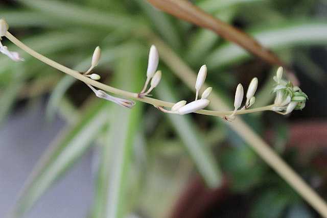いよいよオリヅルランに花芽がつきました。米粒のような蕾ですが、毎年この花が咲くときに小さな花にも意志があるんだなあと実感します。