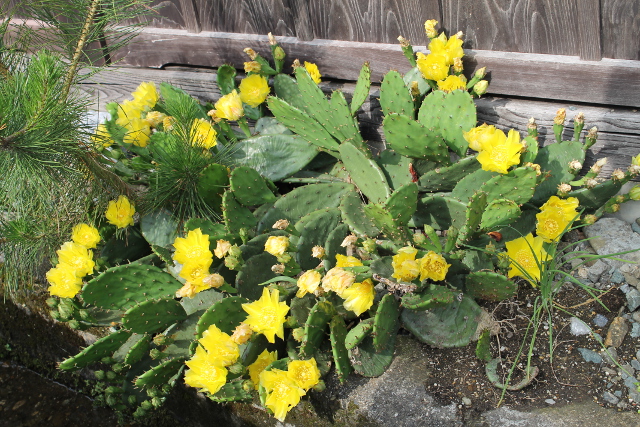うちわサボテンの花です。こんなにたくさん咲いているのを見たのは初めてです。