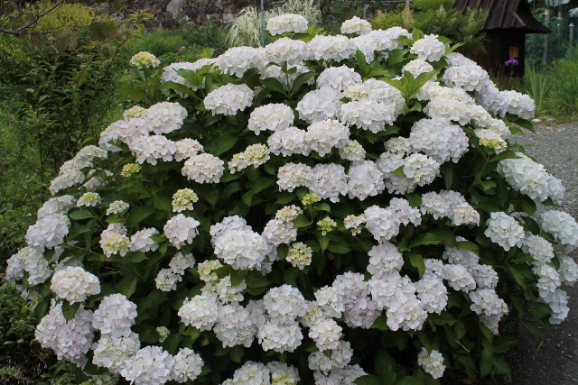 真っ白い紫陽花の花です。こんもりと小山になっていました。