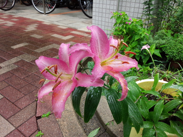 森之宮の大きなUR住宅の中の花壇で見かけました。 後ろの方でオシロイバナも頑張って咲いているのですが、百合の花の豪華さには負けてしまっています。でも、数と花期の長さで勝負するのかも知れません。