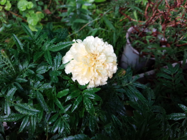 隠れたように咲く白い花もありました。雨に濡れてちょっとしわしわになってるようですが、美しく咲いていました。