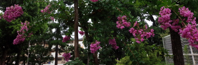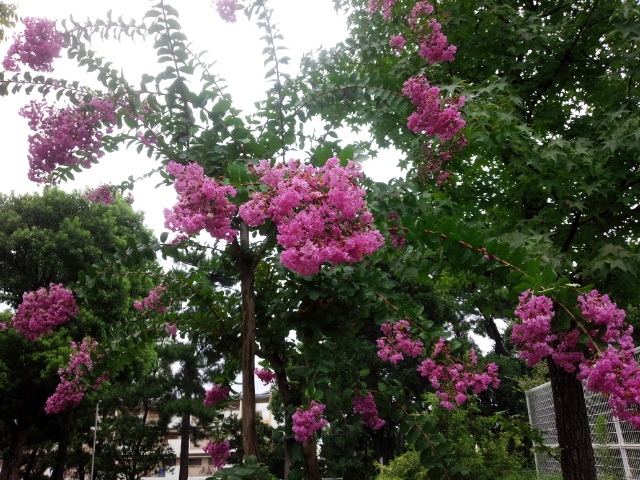 秋の雨に濡れて百日紅の花が重く垂れさがっていました。近くに降りてきているので花は見やすかったのですが。