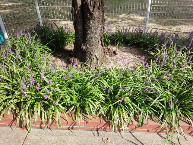 ヤブランの花が大きな周りをぐるっと取り囲んでいました。