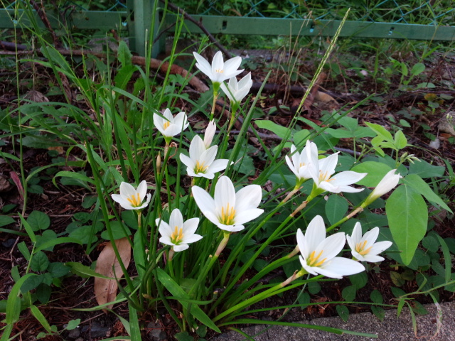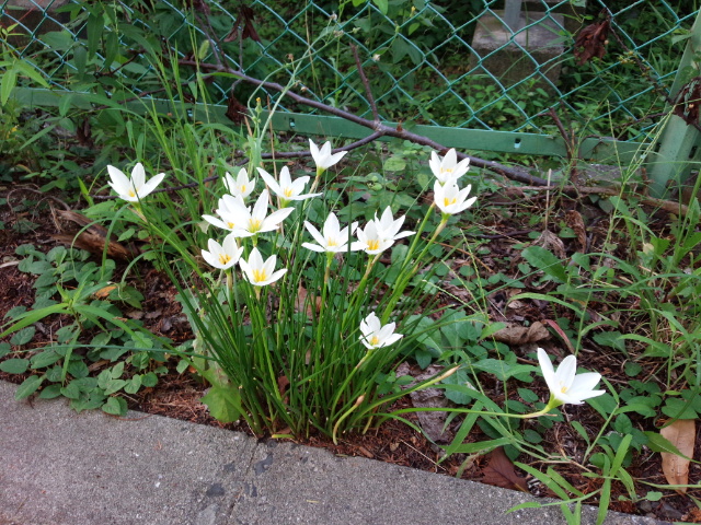 右横(みぎよこ)にももうひとかたまり咲(さ)いていました。タマスダレの南(みなみ)アメリカのラプラタ川(がわ)流域(りゅういき)が原産地(げんさんち)だそうです。