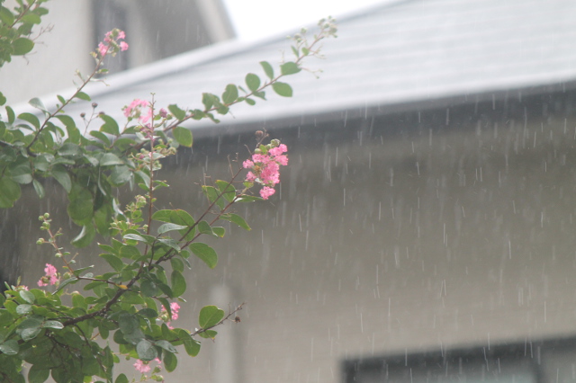 台風21号が近づいています。窓を開けながらパソコンの前にいるのですが、風の音がすごいです。時折、ザザーッと雨の音が混じります。左後ろの方を見ると一本の百日紅の木がピンクの花を枝先につけながら風に吹かれて揺れています。