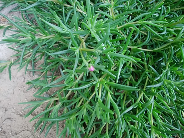 今朝朝刊を取りに行ったときに、マツバギクを覗いてピンクの花芽を見つけました。じっと目を凝らすと二つ見つかりました。