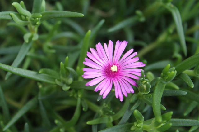 昨日の今日で驚いたのですが、マツバギクが開花しました。きれいに咲いてくれました。