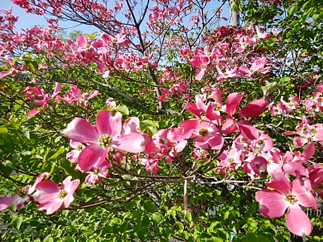 粟生団地のバス降り場に咲いていたハナミズキです。