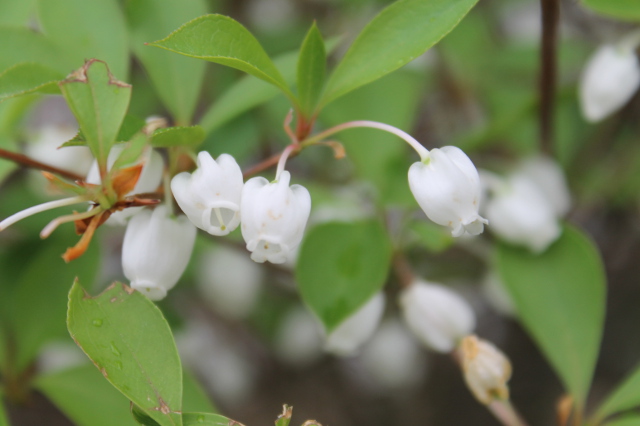 その横に満天星(どうだんつつじ)の花が可憐に咲いていました。一つ一つの花の造りが精巧な感じです。満天に輝く空の星のように例えられたそうですが、一つの小さな花の形に宇宙の神秘を感じます。