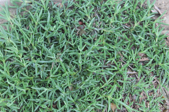 こちらは地面を這っているマツバギクです。別名ツメキリソウでプチンと切った小さな葉から