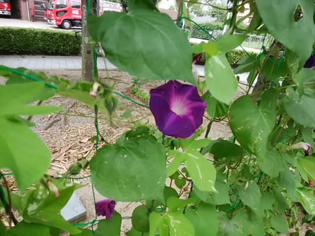 したのは専ら少し離れたところにある交通安全協会の中で過ごしました。講習が終わり、外へ出たとたんに朝顔の花と出会いました。朝顔というのは秋の季語だそうですね。
