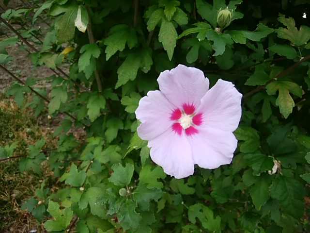 森之宮UR団地の中に咲いている槿の花です。この時期咲いている花が少なくなってきて、大きな木の百日紅の赤い花や白い花のほかは、この槿の花がぽつぽつと目立ち始めました。
