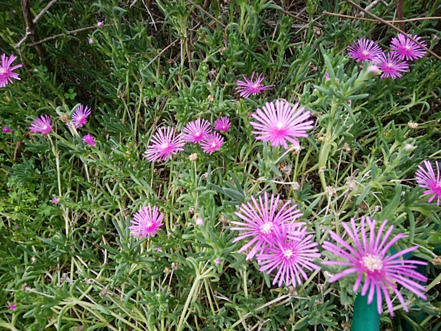 マツバギクって多肉植物なんですね。この花は耐寒性が強いデロスペルマ属らしいです。