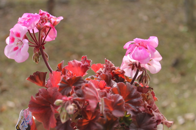 葉っぱはもうこんなに赤くなっているのに花芽はまだついています。ゼラニュームストロングもしかするとこの冬を乗り越えるのではないでしょうか?