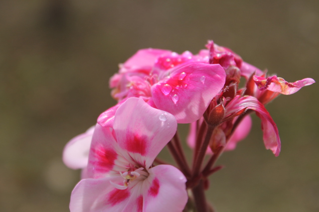 ゼラニュームの花に細かな雪が落ちてきました。凍えそうな花びらの上にまん丸な露が一つ二つできていました。