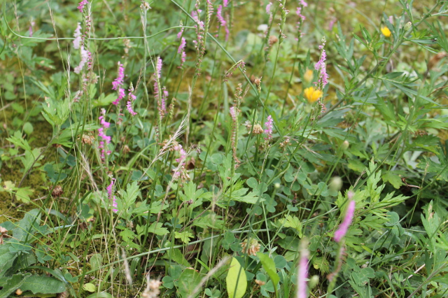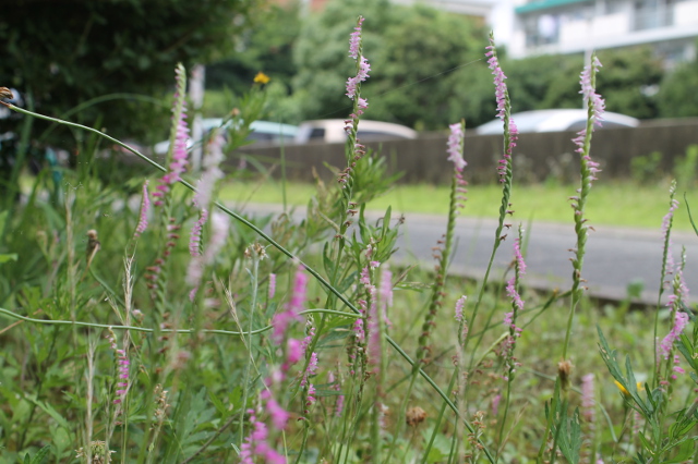 ピンクのネジバナがたくさん咲いていました。たくさん咲いて上へ上へと真っ直ぐに茎を伸ばしていました。