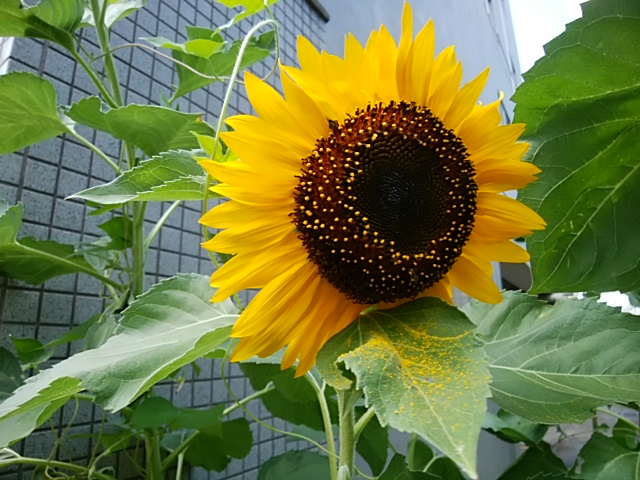 砲兵工廠跡の石碑の横に咲く向日葵(ひまわり)です。