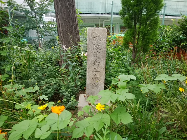 大阪砲兵工廠跡の石碑の周りには黄色い花が咲いていました。もうすぐ、8月14日の空襲の日がやってきます。この石碑を知ってから、インターネットでいろいろ調べてみるうちに72年前の出来事が目に浮かぶようになってきました。この工廠で働いていた人たちの未来がなくなった日なんですね。