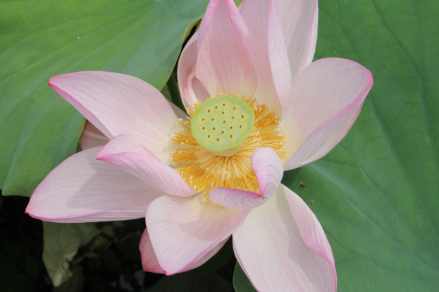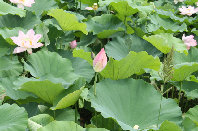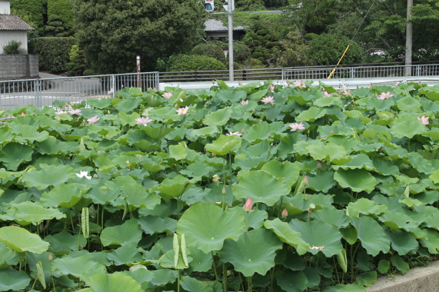 川西市民病院の近くにレンコン畑があります。毎年いつ咲くのか気にしながらこの付近を走行していたのですが、きょう花が咲いているのに気づき、後ろから来るクルマに迷惑をかけてしまいましたが、路上駐車して撮影することができました。