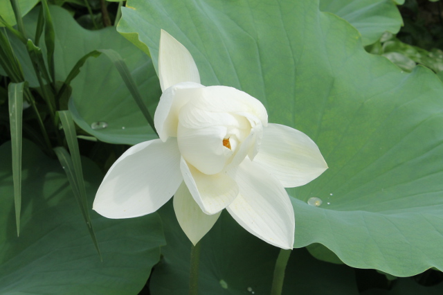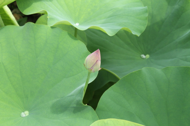 葉っぱの真ん中に水が少しだけたまっています。この葉っぱの表面が水を弾くのを研究して森永のヨーグルトのふたはヨーグルトがくっつかないようなフタになっているそうです。