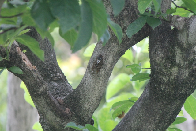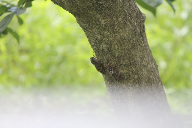 もう一匹の蝉が離れたところで羽根を動かしていました。これはオスなのでしょうね。