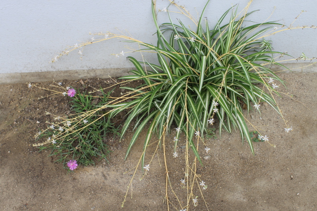 7月9日の様子です。花が二つ咲いていました。「まつばぎく 折り鶴ランに 立ち向かう」