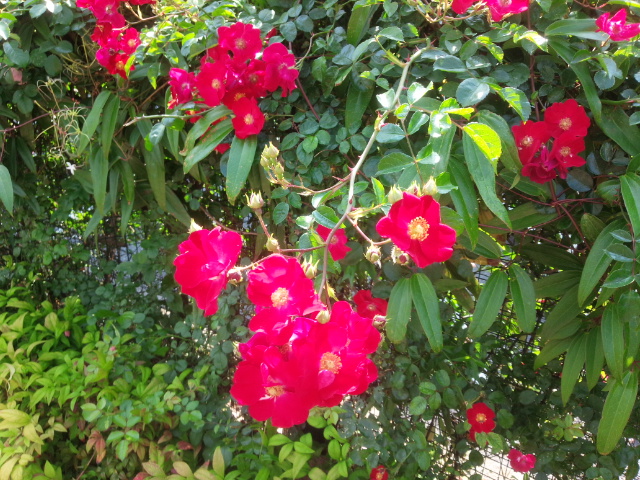 こんな感じでフェンスに添えられた緑の中から花が顔を出し始めました。