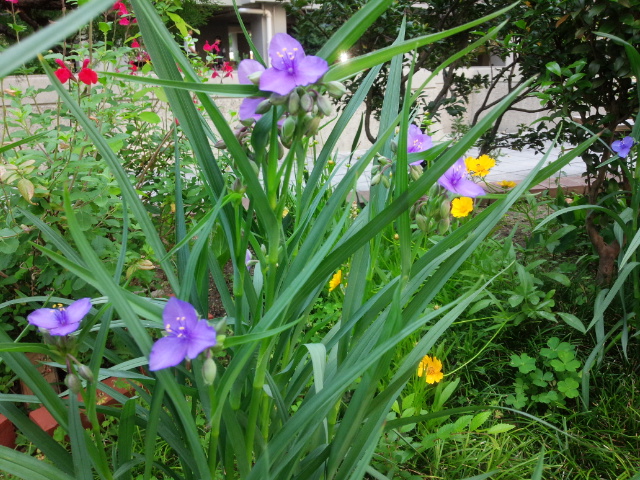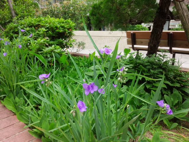 森之宮のUR住宅の下の緑地に咲いていました。遠くから見てアヤメの花が咲いているように見えたのですが、近寄って花を見るとアヤメの形ではありませんでした。アイリスのような気もするのですが、今のところ分かりません。目立たない花ですが、遠くから見て紫色は目につく色のような気がします。