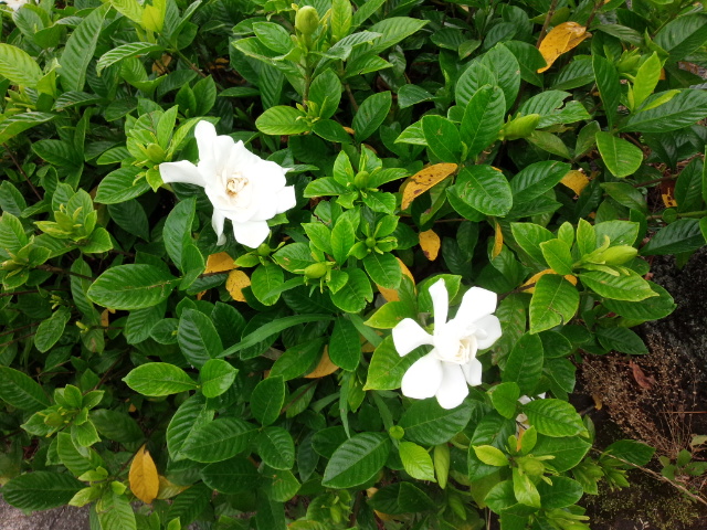 箕面の街路樹として植えられている梔子の花が咲き始めました。真っ白に咲いているのでハレーションのような感じになってしまい花弁がはっきりと撮影できません。近寄って観察すると花の一つ一つがそれぞれ微妙に違っていて面白いのですが、横の青々とした葉っぱもまた美しい感じがします。