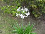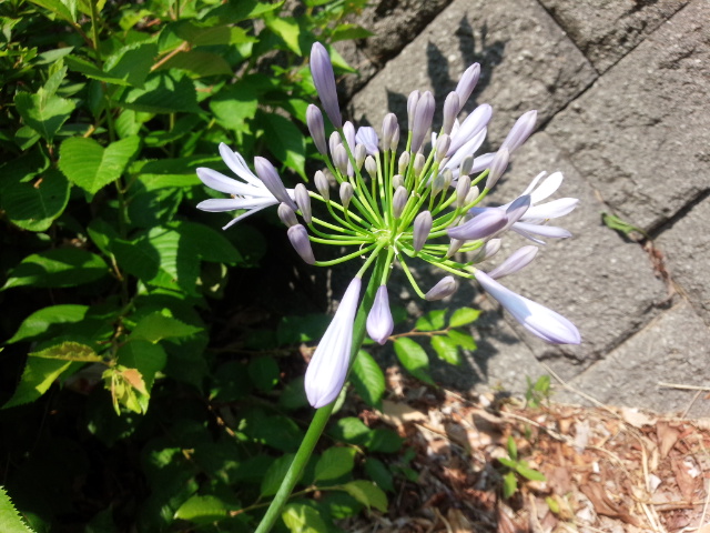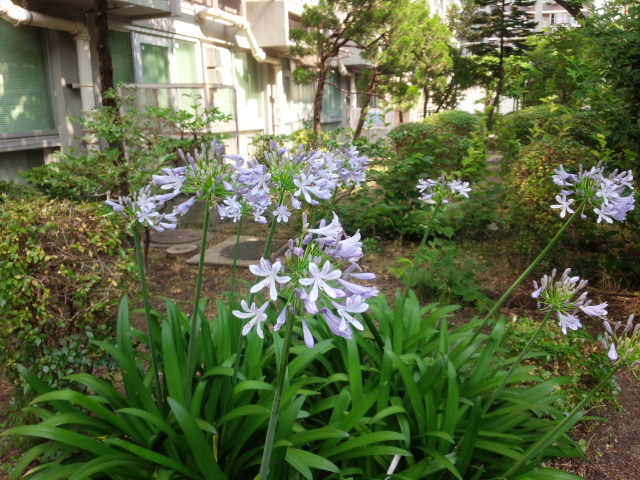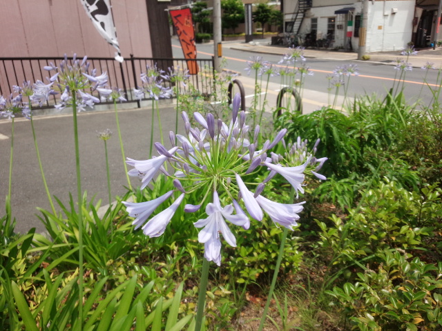 いよいよアガパンサスの花が咲き始めました。うすむらさきの花がダイナミックに開き始めました。蛍池のアガパンサスです。