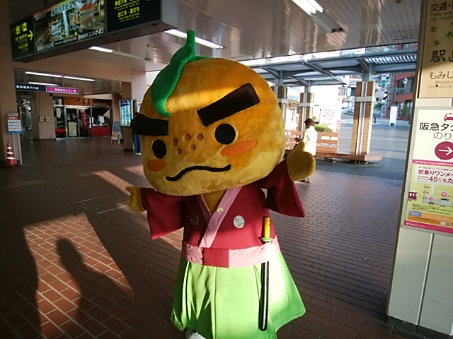 今朝、阪急箕面駅で私の乗車したバスを出迎えてくれたゆずるくんです。