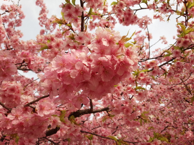 カワヅザクラとは大島桜と寒緋桜の自然交雑種といわれている早咲きの桜だそうです。静岡県賀茂郡河津町で発見されたそうで、平成15年にかやの中央の町開きを記念して河津町のご好意で箕面市に寄贈されたそうです。