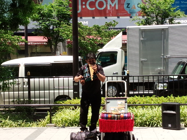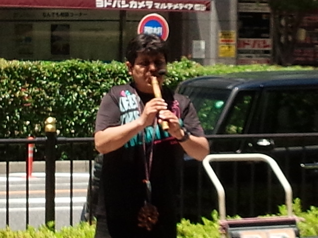 梅田駅で綺麗な笛の音が聞こえてきました。私の好きな音だったのでエスカレーターを降りて近くまで行って聞きました。二種類の笛を鳴らして演奏していました。