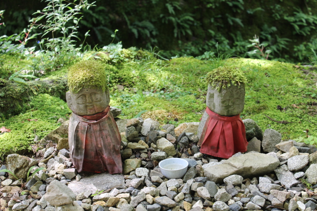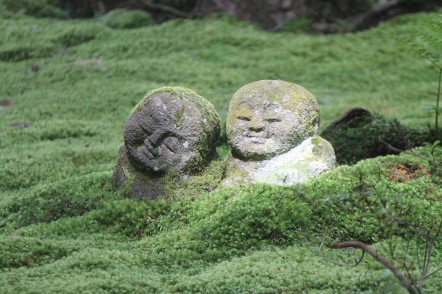 京都大原の三千院の庭に仲良く並んだわらべ地蔵です。