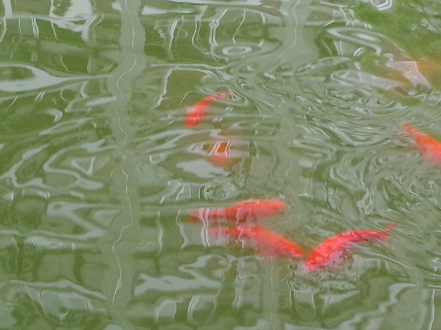 カメラで撮影すると水紋がはっきりと出て鯉の姿がぼやけてしまうのですが、目で見ると鯉がダイナミックに見えるのです。
