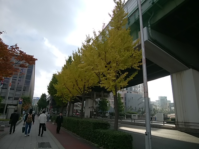 大阪の中央大通りのイチョウです。このあたりのイチョウの木は牡なのでしょうか?あまり銀杏の実が転がっていないようです。