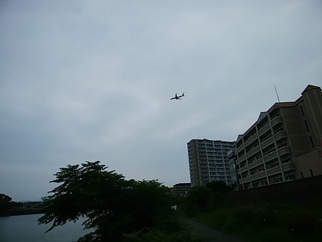 当然轟音が聞こえてきてジェット機が頭の上を通り過ぎました。
