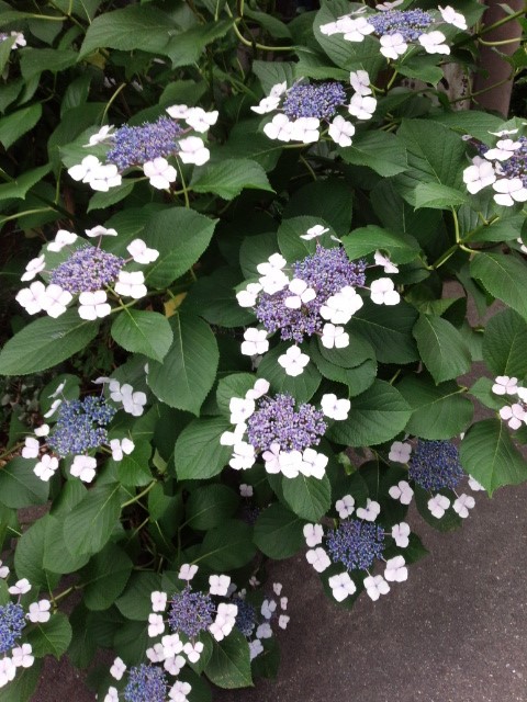 大阪市内、梅田から天満の方へ歩いて行く途中で昔ながらのガクアジサイを見ました。