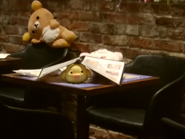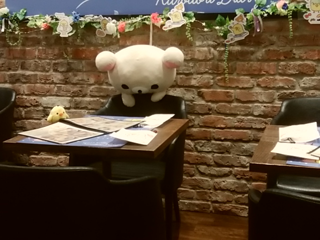 入り口近くのテーブルでメニューを見ているコリラックマの姿が可愛くて撮影してみました。
