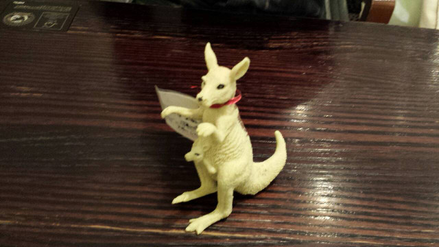 ヒロコーヒーで見(み)かけた席(せき)取(と)りアニマル人形(にんぎょう)のカンガルーです。
