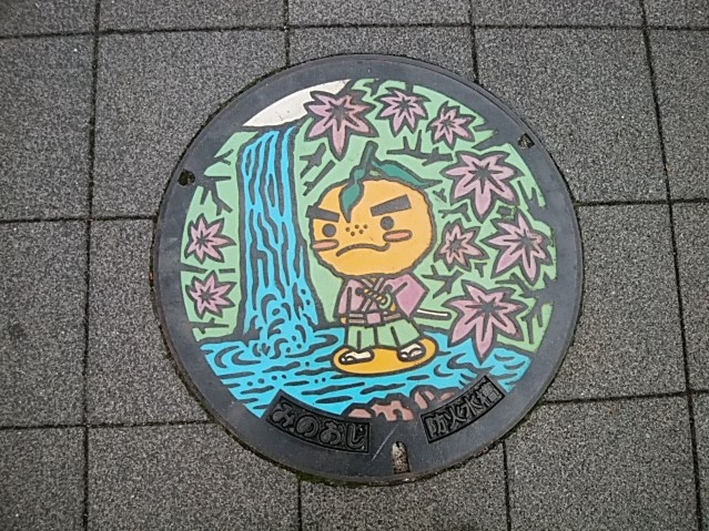 箕面駅前で撮影したゆずるくんがデザインされた防火水槽のフタです。ゆずるくんが描かれているのはこれ一枚だそうです。