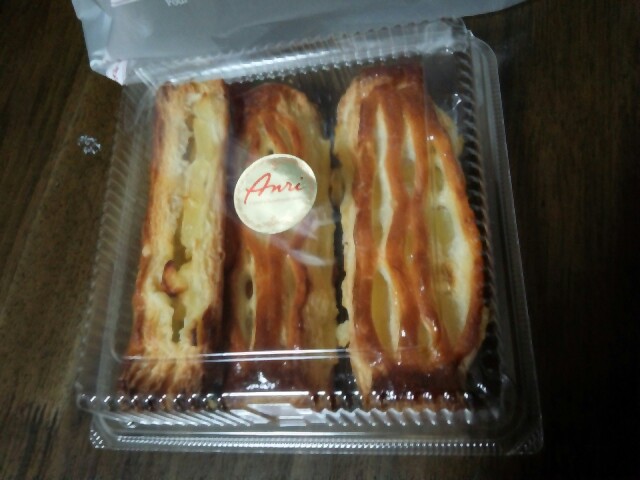 かなり探したのですが見つからなかったので、駅に戻り駅員さんにもたずねたのですが、知らないと言うことであきらめて箕面行きに乗りました。電車の中で『阪急桜井駅 アップルパイ』で検索すると『アンリ』というお店がヒットし、地図も出ていて本日営業中と記されていました。箕面駅でまたまたUターンして桜井駅へ、スマホの地図を便りに探すと改札口を出て真っ直ぐ大きな通りまで出てそこを右に回ってすぐの所にありました。ちょっと見つけるまで時間がかかってしまいました。アップルパイはかなりおいしかったです。