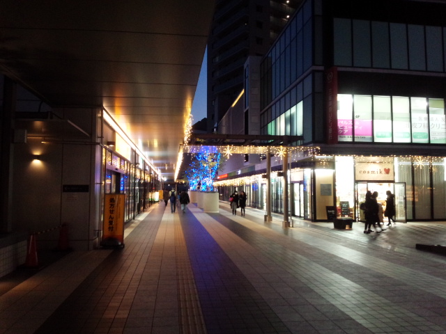 人通りは少ないですが、町の灯りは美しかったです。
