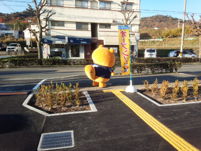 近くにコンビニがオープンしました。朝この前を車で通ったときに、ポンタくんが子どもたちと楽しそうに走り回ったり、記念撮影をしたりしていました。