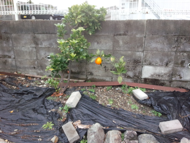 箕面の山から下りている勝尾寺川の川べりにこんな珍しいミカンがなっていました。小さなミカンの木に大きな実がなっているのです。か細い幹がミカンの重みでぐにゃっと左に傾いています。