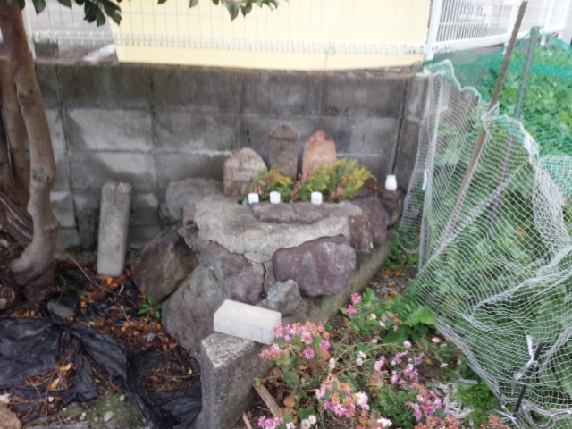 その並びに安置されているお地蔵様です。三体の小さなお地蔵様ですが、大事にされているのかそれぞれに小さな湯呑みが置かれています。