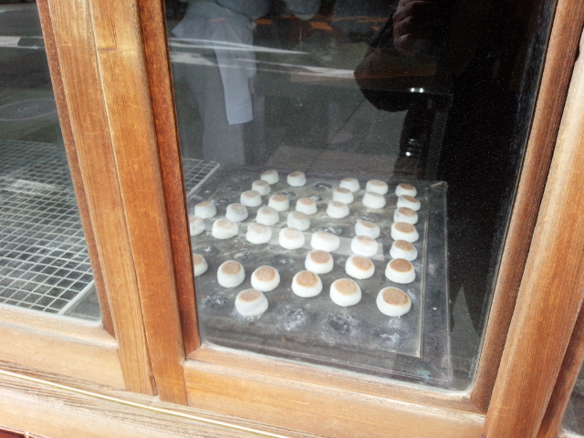 これが最後のやきもちです。あと50個足らずしか残っていません。お店の中には次から次ヘとお客さんがやってきてあっというまに売り切れてしまいました。11時には完売になっていました。
