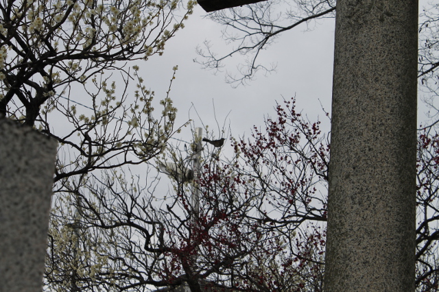 紅梅も咲き始めていたのですが、ちょっと地味に咲いていました。